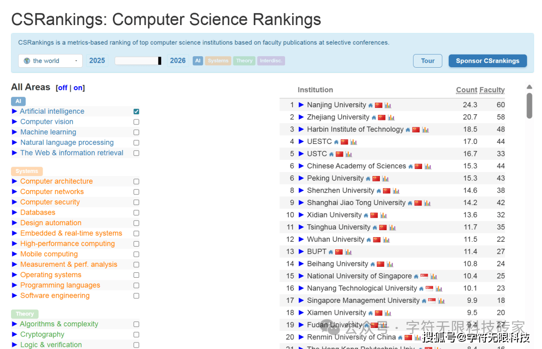 正在最新发布的2025-2026 CS Rankings中,全球计较机科学款式呈现出一个明显趋向——中国高校全面兴起,正在多个焦点取前沿标的目的占领从导地位。
